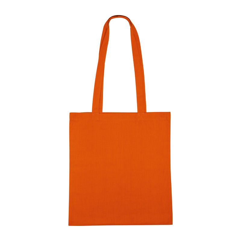 Oeko-Tex® STANDARD 100 certificirana torba u boji izrađena od pamuka gramaže 110 g/m² s dugim ručkama. Otisak reklame nalazi se na jednoj od dvije strane.