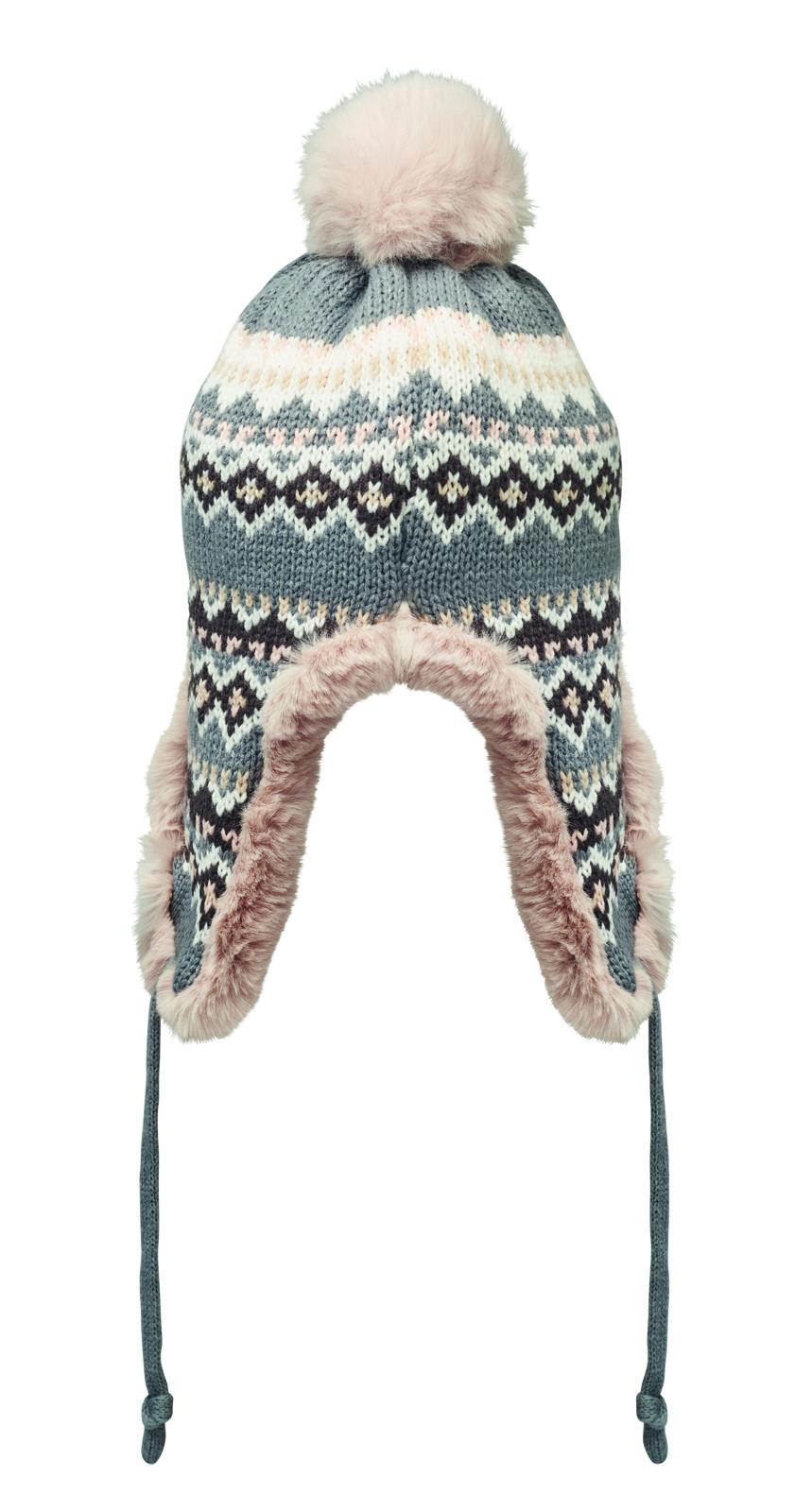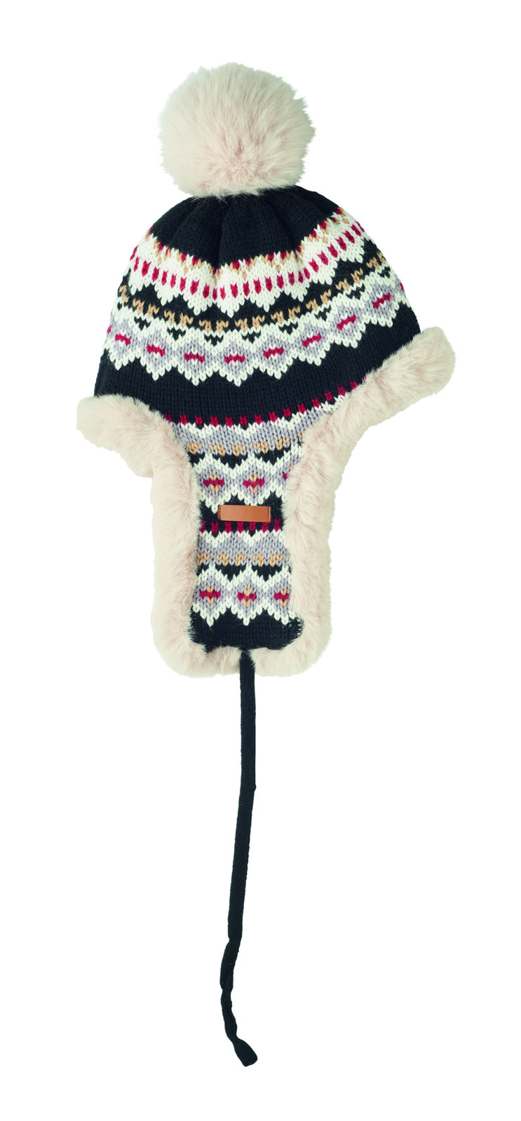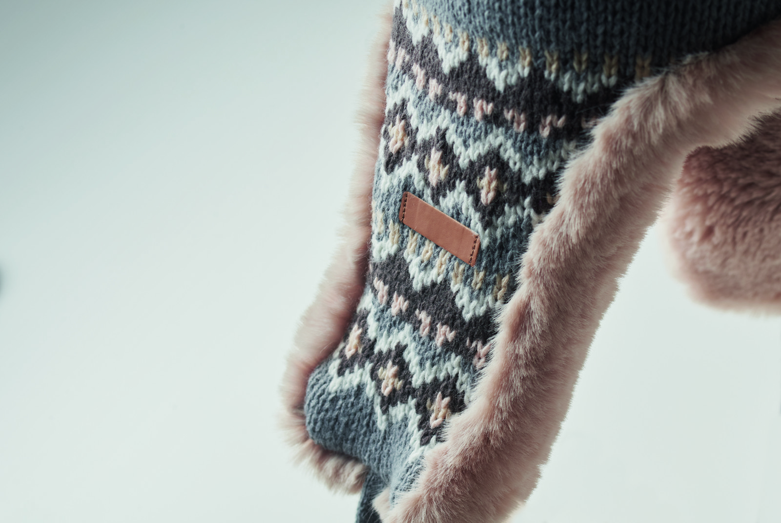 Pletena kapa s ušima i pomponima od akrilnih vlakana s podstavom od poliestera i flisa. Uključuje etiketu za područje za tisak s jedne strane. Veličina za odrasle.
