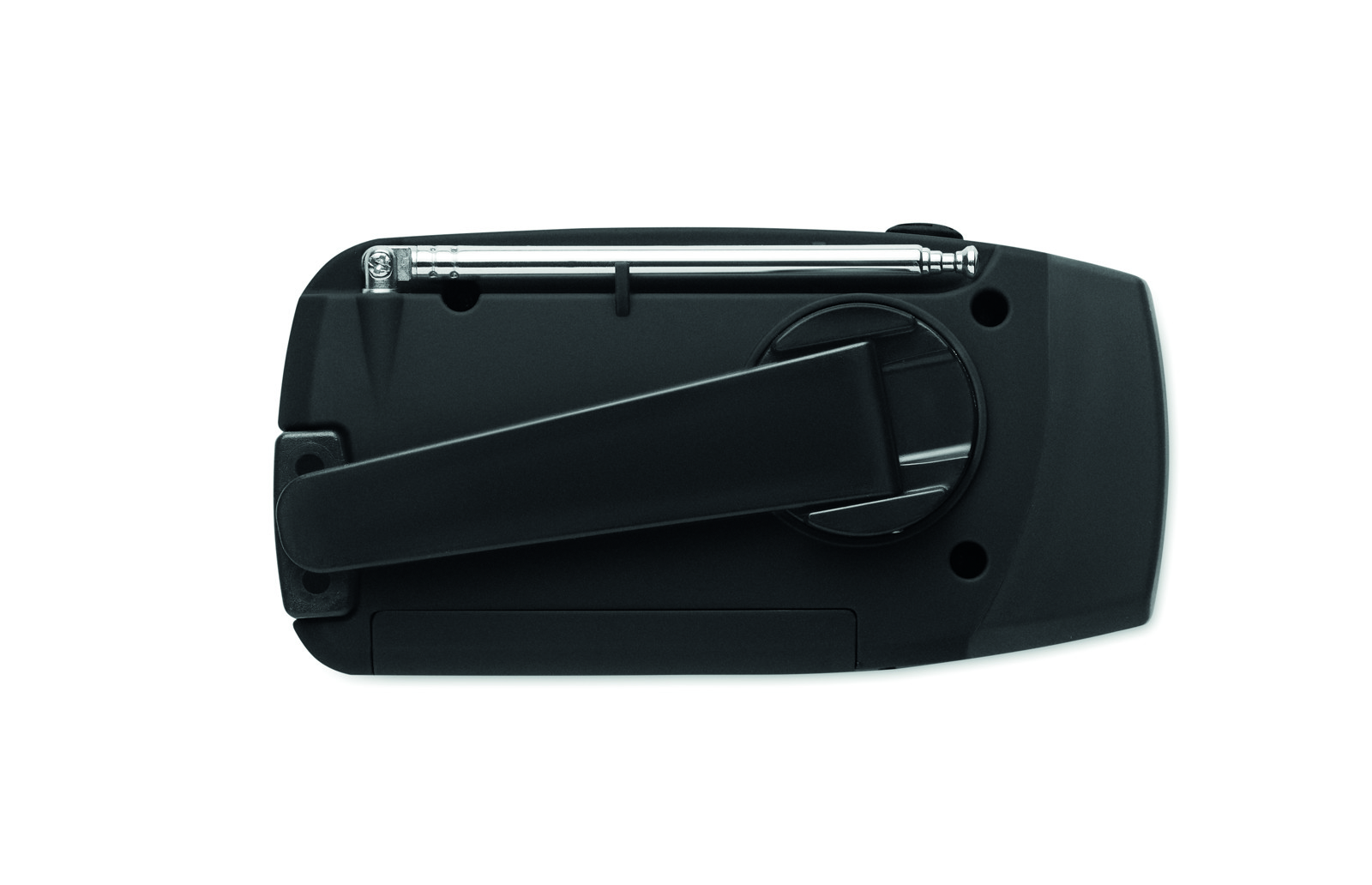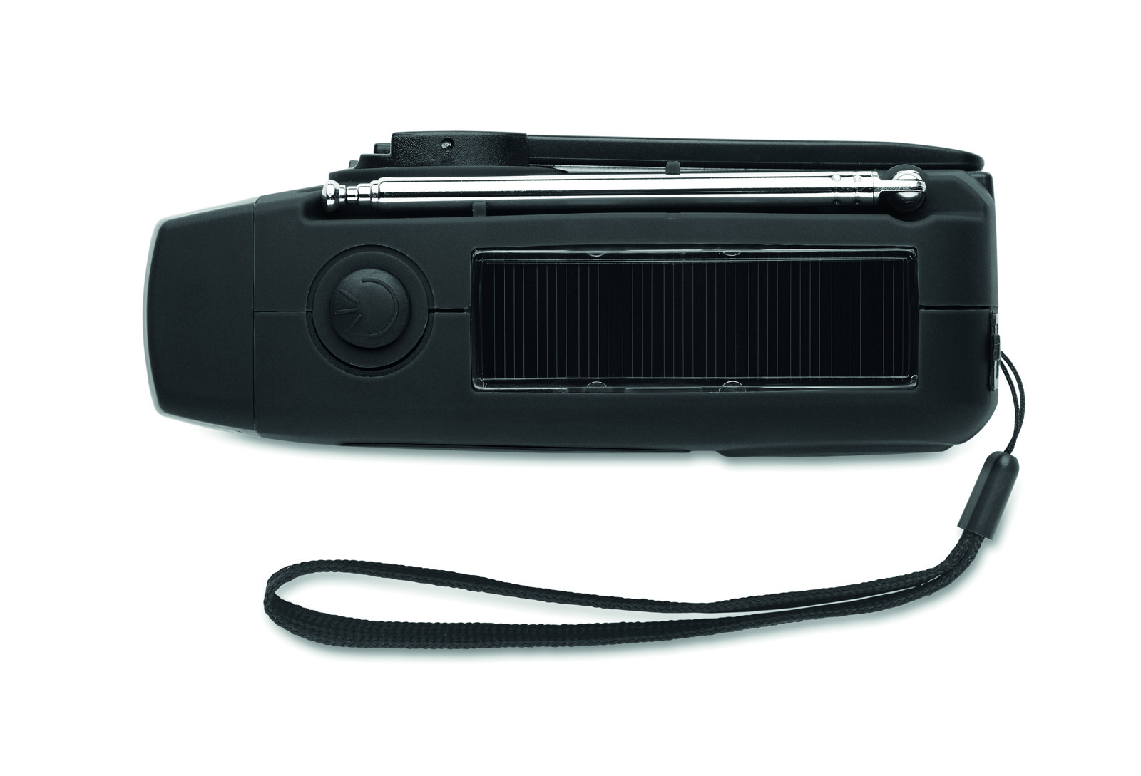 Prijenosni AM/FM radio od ABS plastike s LED svjetiljkom (2 postavke) i power bankom od 1200 mAh za punjenje u nuždi. Napaja se solarnom energijom i ručnom ručicom.