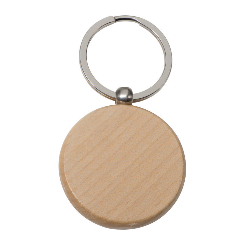 Okrugli privjesak za ključeve od bukovog drva s prstenom za ključeve. Laserskim graviranjem vaš logotip idealno dolazi do izražaja.