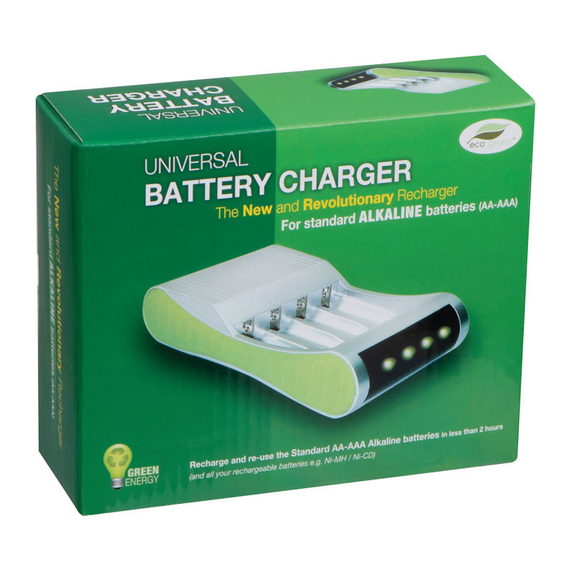 Ovaj punjač baterija je prava inovacija. Možete napuniti i ponovno upotrijebiti do 4 alkalne baterije (AA / AAA alkalne) ili čak NiMH baterije u roku od dva sata. Uključuje utikač. Vaš logotip tiskamo na srebrnu površinu.