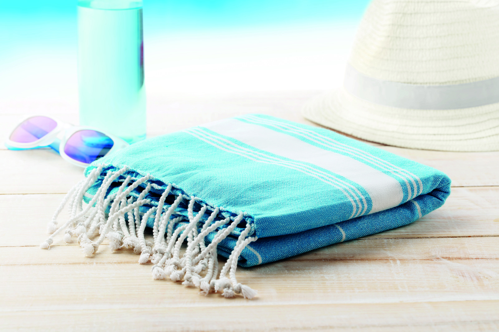 Deka za ručnik za plažu/hamman od pamuka 180 gr/m². Ovaj proizvod ima OEKO-TEX® STANDARD 100 certifikat.
