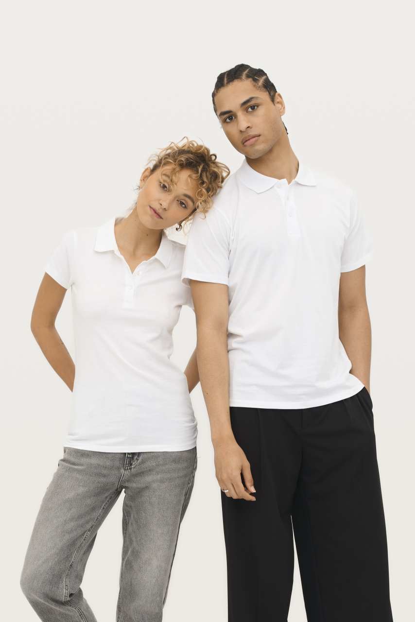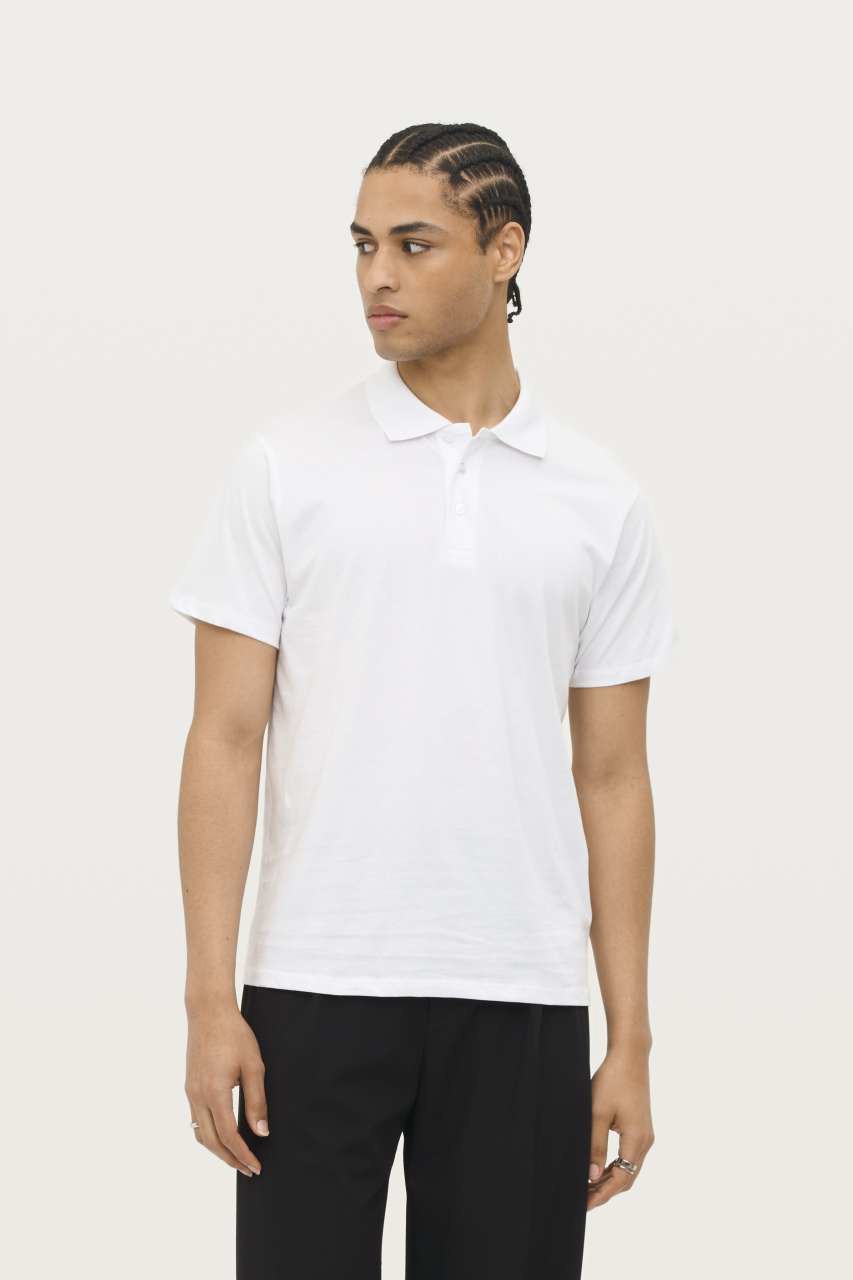 Kvaliteta 100 % polučetkani prstenasto ispreden pamuk Stil Traka za ojačanje na vratu Rebrasti ovratnik Kratki rukavi 3 gumba u boji tkanine Rezervni gumb na unutarnjem šavu