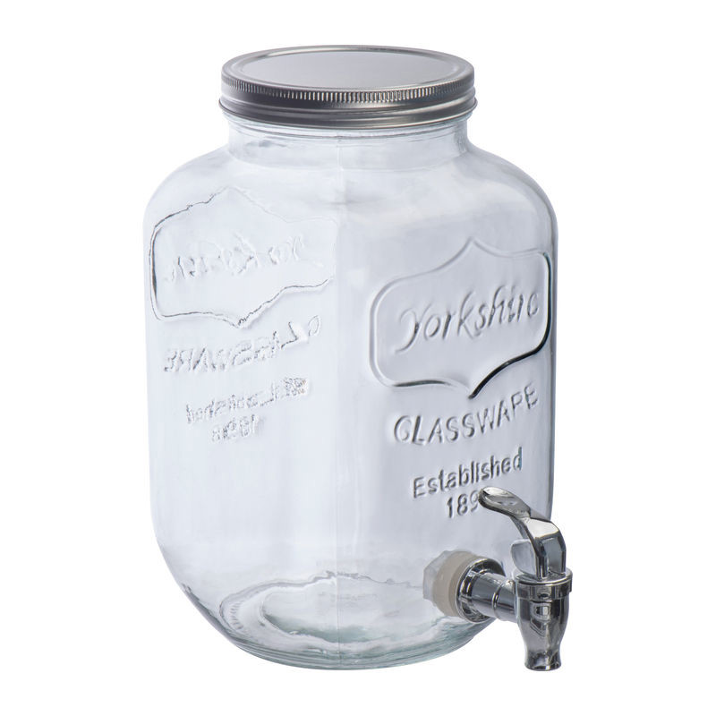 Stakleni dozator (4000 ml) s 4 vrča (450 ml) i 4 slamke. Ovaj set je savršen za gotovo svako godišnje doba. Vaš logotip bit će laserski ugraviran na navojni čep dozatora.