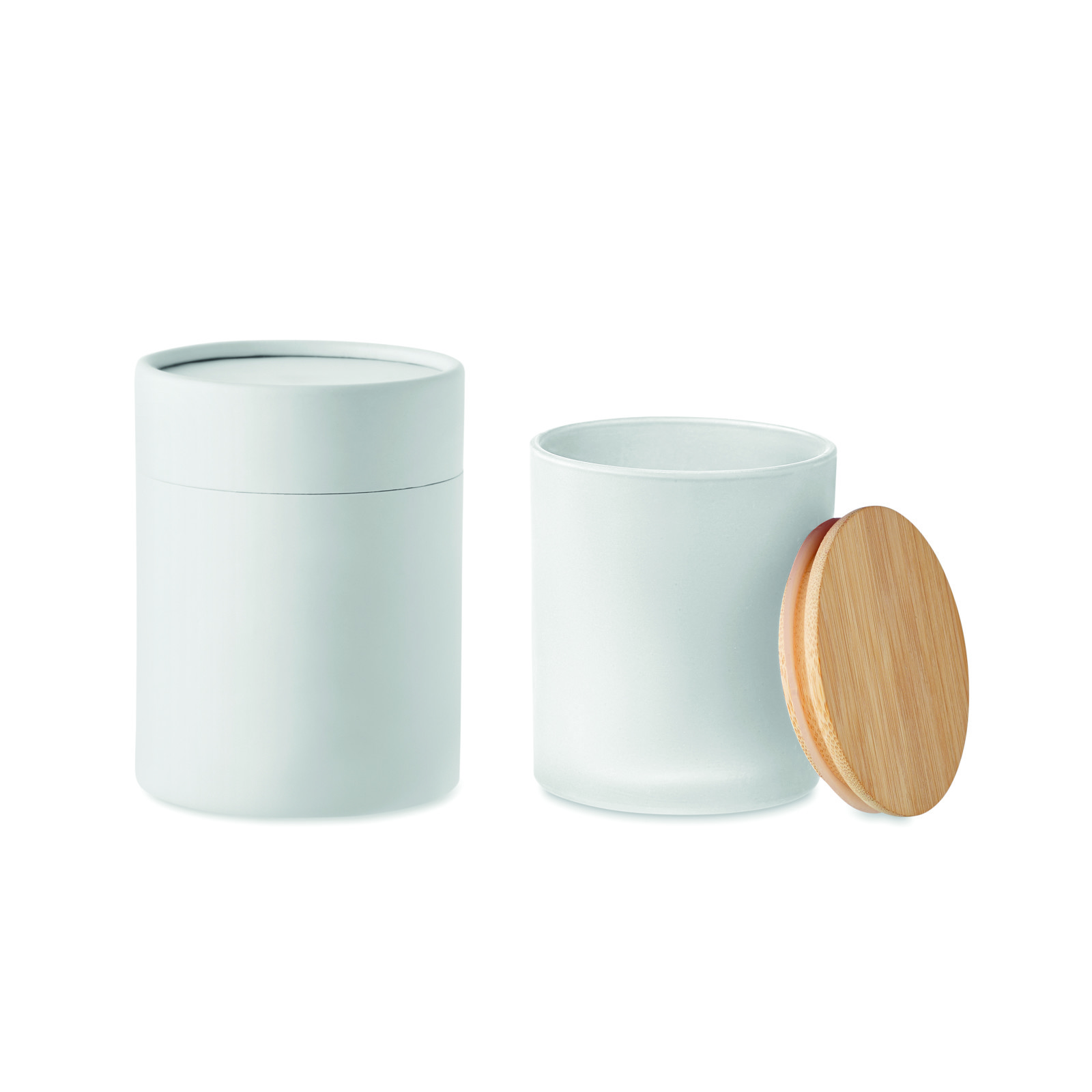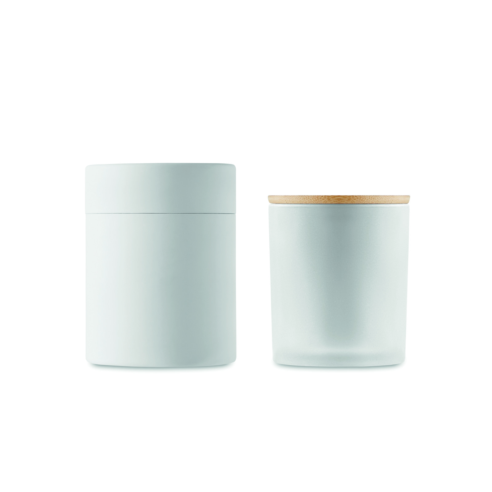 Mirisna voštana svijeća na biljnoj bazi u staklenoj posudi od matiranog stakla s bambusovim poklopcem. 120 gr. Vrijeme gorenja: 20 sati. Dolazi u poklon kutiji od papirnate cijevi. Bambus je prirodni proizvod, moguće su male varijacije u boji i veličini po artiklu, što može utjecati na konačni rezultat dekoracije.