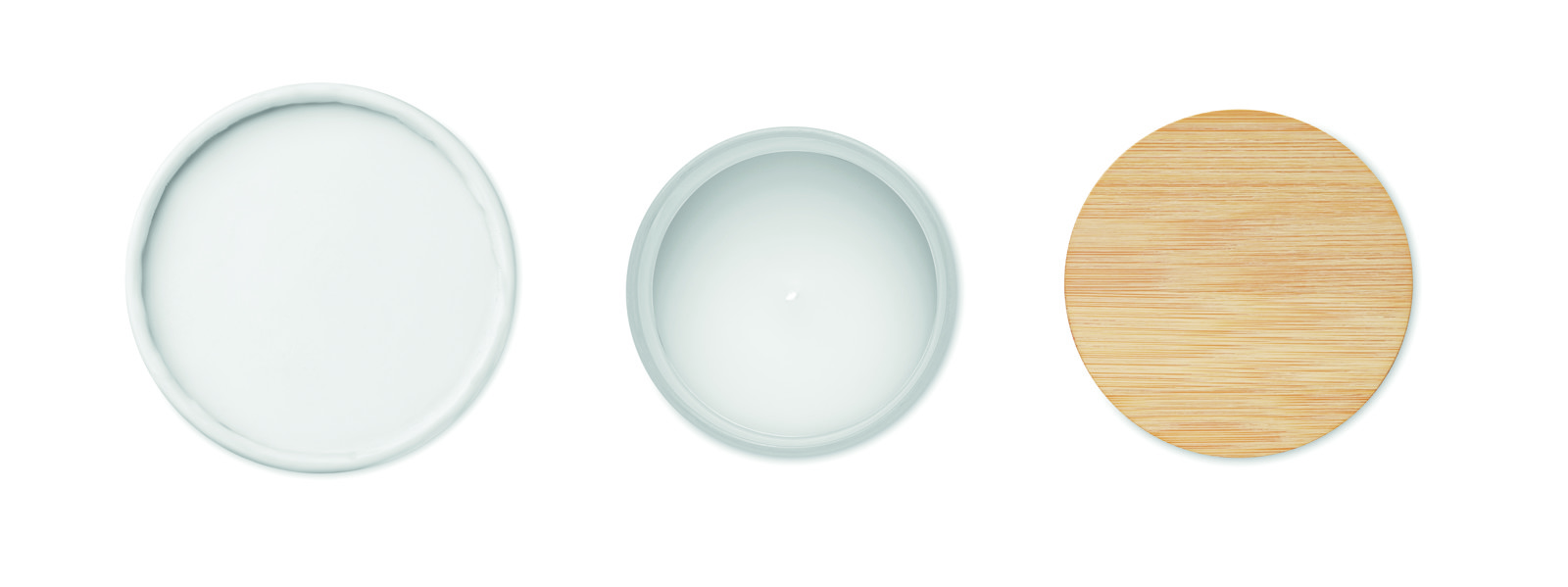 Mirisna voštana svijeća na biljnoj bazi u posudi od matiranog stakla s bambusovim poklopcem. 280 gr. Vrijeme gorenja: 46 sati. Dolazi u poklon kutiji od papirnate cijevi. Bambus je prirodni proizvod, moguće su male varijacije u boji i veličini po artiklu, što može utjecati na konačni rezultat dekoracije.