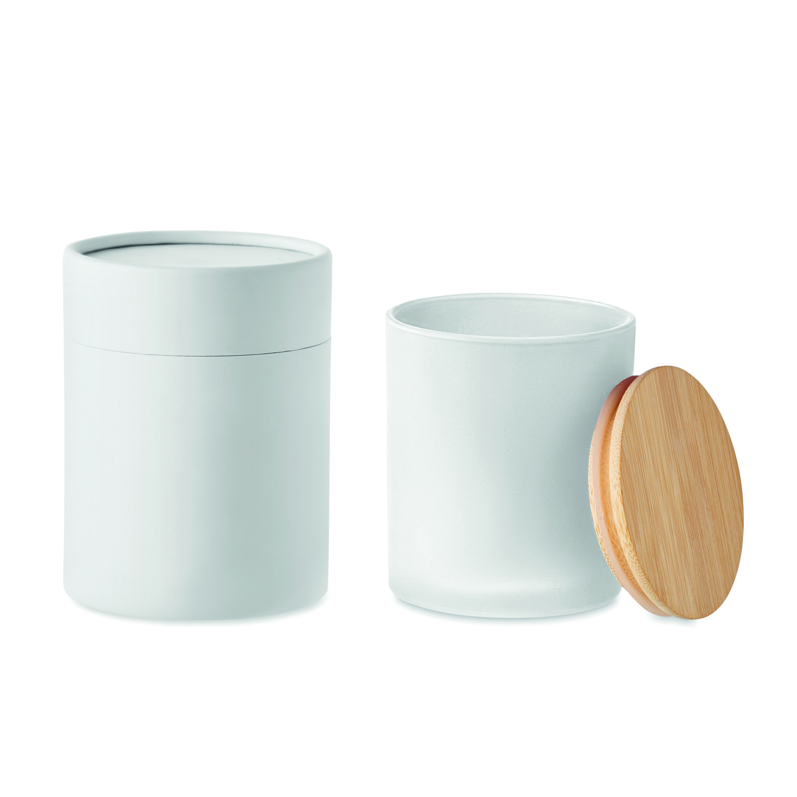 Mirisna voštana svijeća na biljnoj bazi u posudi od matiranog stakla s bambusovim poklopcem. 200 gr. Vrijeme gorenja: 33 sata. Dolazi u poklon kutiji od papirnate cijevi. Bambus je prirodni proizvod, moguće su male varijacije u boji i veličini po artiklu, što može utjecati na konačni rezultat dekoracije.