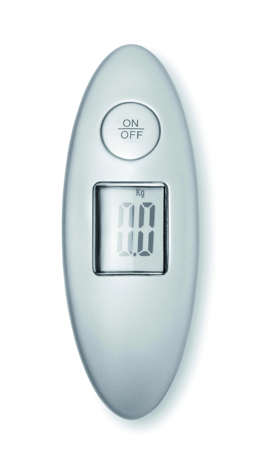 Vaga za prtljagu u ABS kućištu. Maksimalni kapacitet mjerenja: 40 kg. Jedinica mjere u kilogramima ili funtama. Napaja se 1 baterijom uključenom. Pojedinačno pakiranje u srebrnoj kartonskoj kutiji.