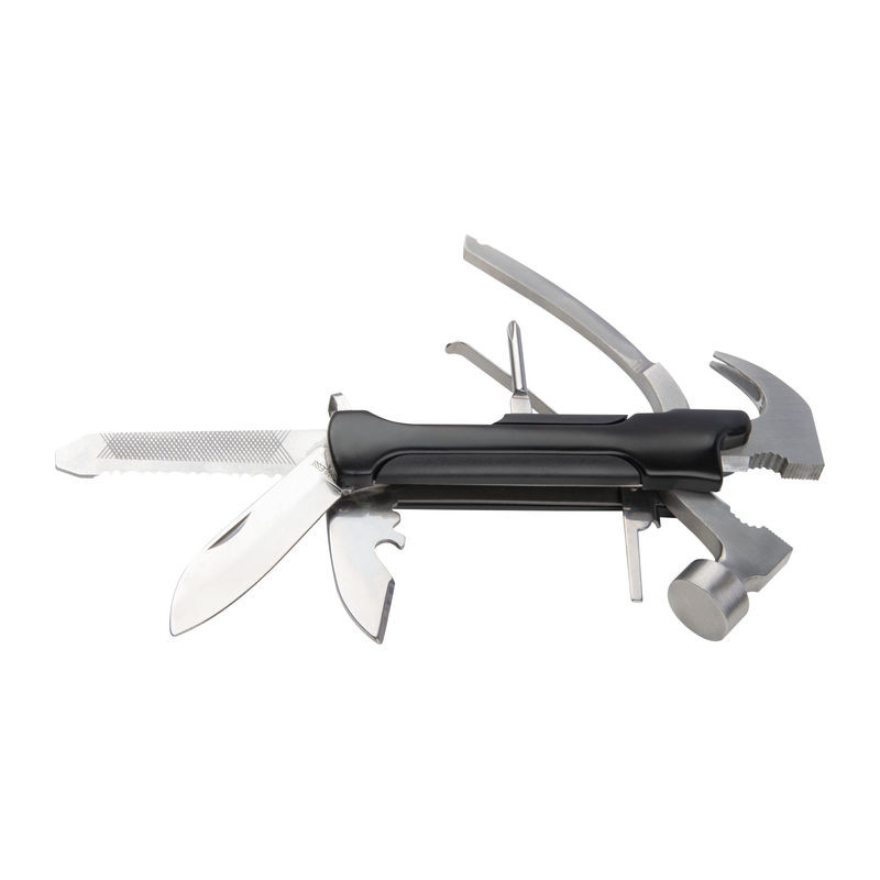 Višenamjenski alat (nehrđajući čelik) koji se sastoji od čekića, turpije, dvije oštrice, pile, odvijača s prorezom i otvarača za boce. Uključena je odgovarajuća kutija na koju u sredini tiskamo vaš logotip.
