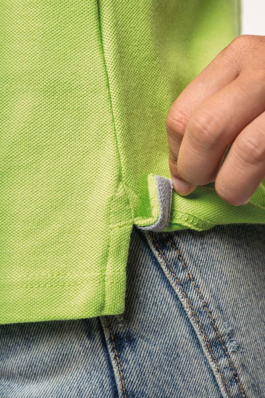 100 % četkani pamuk piqué – perivo na 60 °C (plavosiva: 90 % četkani pamučni piqué / 10 % viskoza – perivo na 40 °C) Rebrasti ovratnik i manšete Kontrastni ojačani ovratnik i bočni prorezi u plavosivoj boji za sve boje, osim tijela modela u plavosivoj boji, na kojima je ovratnik tamnosivi Prorez s 2 gumba Završna obrada s dvostrukim šavovima Certificirano prema STANDARDU 100 OEKO-TEX® N° CQ 1007/7, IFTH Artikli tamnosive i svijetle kraljevske plave boje mogu imati različite nijanse