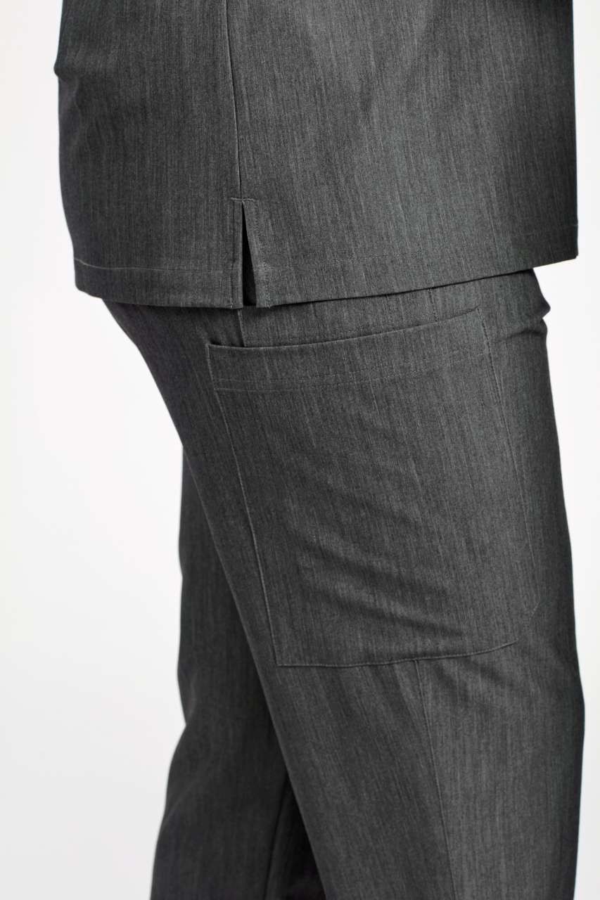 Tkanina 42% poliester, 33% reciklirano Poliester, 19% viskoza, 6% elastan Karakteristike Prozračna rastezljivost u četiri smjera za lako kretanje i cjelodnevnu udobnost Izdržljiva, otporna na gužvanje i jednostavna za održavanje V-izrez s jednim džepom na prsima Izrađena od recikliranog poliestera Moderan kroj sa stražnjim prorezima i bočnim prorezima