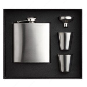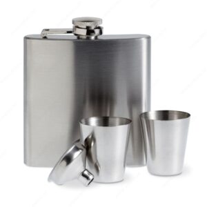 Pljoska SLIMMY FLASK SET + 2 čaše, 175ml, srebrna