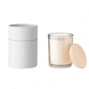 Svijeća mirisna vanilija KIVAS + kamenčići i drveni fitilj, bijela