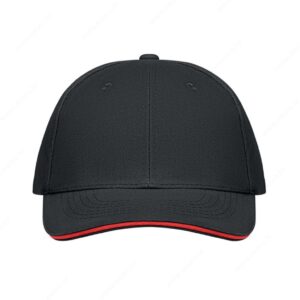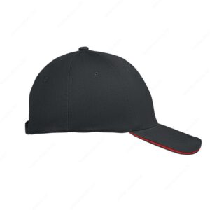 Kapa šilt 6 panela BUZZ 260g, metalna kopča, crno/crvena (black/red)