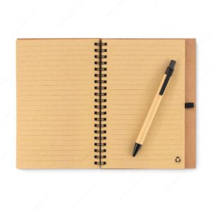 Notes spiralni A5 SONORA PLUSCORK 70L, linije + olovka kemijska, crni