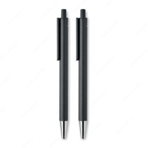 Olovka kemijska + olovka kemijska DERRICK, plava/crna tinta, siva (titanium)