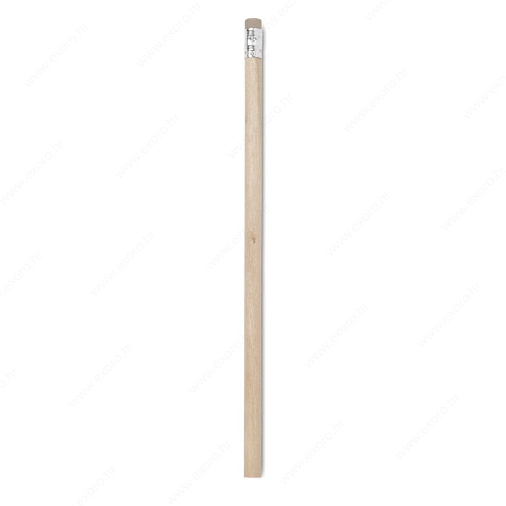 Drvena grafitna olovka s gumicom. Izrađena od prirodnog drva, idealna za pisanje, crtanje i svakodnevnu uporabu.